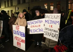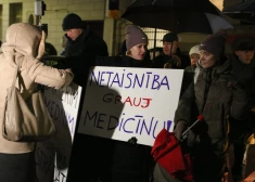 Partijas "Suverēnā vara" pikets, kamēr Latvijas Ārstu biedrības Sertifikācijas padomes ārkārtas sēdē lemj par "Āgenskalna klīnikā" strādājošā ārsta Edgara Medņa ...