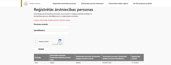 Lēmumu par Edgara Medņa ārsta sertifikātu tur slepenībā: lūkojam, ko uzrāda Veselības inspekcijas datu bāzes