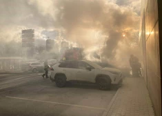 FOTO; VIDEO: Vienības gatvē dūmu mutulī sadeg automašīna