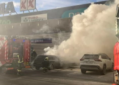 Notikuma vietā ieradušies Valsts ugunsdzēsības un glābšanas dienesta (VUGD) darbinieki, lai dzēstu liesmas un novērstu tālāku uguns izplatību uz blakus esošajām automašīnām vai veikala ēku.