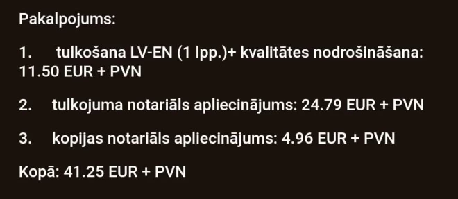 2) iztulkot laulības apliecību un apstiprināt to notariāli, lai varētu to uzrādīt robežkontrolei. Savukārt izmaksas šim risinājumam ir visai augstas. Zemāk tās var apskatīt.