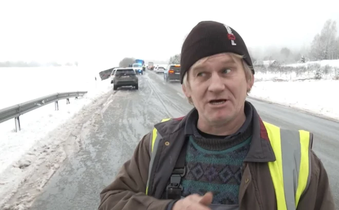 "Šitas busiņš sāka mani apdzīt. Tā trajektorija, es jau pretī redzēju, ka pretī nāk tā otra mašīna – zaļā krāsā. Es jau redzēju, ka viņi jau nespēs samainīties. Ceļš ir slidens, apstāties nevar… Rezultātā ieskrēja otrā mašīnā iekšā un tā mašīna uzsita manai mašīnai virsū. Un es ar savu auto iesitu busiņu grāvī iekšā, stāsta negadījumā iesaistītā kravas auto vadītājs Andis.