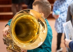Pirms koncerta mazajiem klausītājiem dota arī iespēja tuvāk iepazīt orķestra instrumentus un pašiem tos izmēģināt.