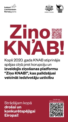 Pateicoties Eiropas Ekonomikas zonas (EEZ) grantu atbalstam, kopš 2023. gada septembra Latvijas iedzīvotāji par iespējamu korupciju var ziņot ērtā, mūsdienīgā un inovatīvā platformā “Ziņo KNAB!”. Ziņot iespējams gan tiešsaistes platformā tīmekļa vietnē zino.knab.gov.lv, gan mobilajā lietotnē. Fiziska persona un juridiskas personas pārstāvis ziņojumu var iesniegt, autentificējoties valsts pārvaldes pakalpojumu portālā Latvija.lv. Ja savu identitāti ziņotājs nevēlas atklāt, viņš var izvēlēties informāciju sniegt arī anonīmi. Abos gadījumos ziņojuma iesniedzējs saņem unikālu identifikācijas numuru, kas pēc tam ļauj sekot līdzi ziņojuma virzībai KNAB, kā arī iesniegt papildu informāciju. Kā liecina statistika, iedzīvotāji labprāt izmanto jauno sistēmu: 2024. gadā platformā saņemts 10 reizes vairāk ziņojumu nekā iepriekšējā atbilstošajā laikposmā. Tādējādi īstenotie risinājumi institūcijai palīdz vieglāk izmeklēt, bet iedzīvotājiem – ziņot.
