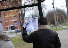 Meklētā cilvēka attēls autobusa pieturā Pārdaugavā.