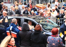Cilvēki pulcējas Vecrīgas ielās, lai vērotu pāvesta Franciska braucienu uz Brīvības pieminekli