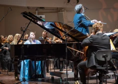 FOTO: Liepājas Simfoniskā orķestra sezona izskan ar Vaska, Ešenvalda un Klāras Šūmanes meistardarbiem