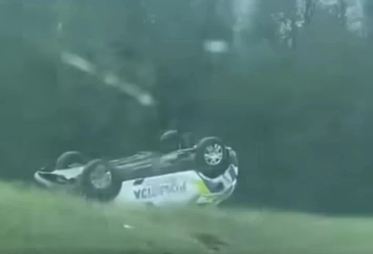 Madonas novadā uz jumta apgāzusies policijas automašīna