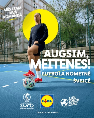 “Lidl” izsludina iespēju sešām jaunietēm no Latvijas bez maksas doties uz jauniešu futbola nometni “Lidl Youth camp”, kas tiek organizēta UEFA čempionāta sieviešu futbola EURO 2025™ ietvaros. Jauniešu futbola nometne norisināsies Šveicē, Bāzelē, šī gada 24.–28. jūlijā, un pulcēs 100 jaunietes - futbola entuziastes no 18 Eiropas valstīm.