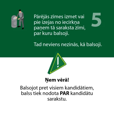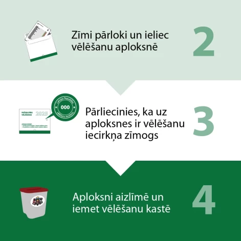 Vēl viena būtiska lieta: ārvalstīs pašvaldību vēlēšanās nav klātienes iecirkņu, tādēļ tur esošie vēlētāji savu balsi var nodot pa pastu. Ja cilvēks skaidri zina, ka vēlēšanu laikā atradīsies ārvalstīs, tad var balsot pa pastu, tikai jārēķinās, ka tas jādara savlaicīgi, jo pēdējais datums, kad šādu balsojumu veikt, ir 30. maijs. Te gan var rasties jautājums - kā vēlētājam ārvalstīs saņemt vēlēšanu zīmes? Ļoti vienkārši: ieejot portālā latvija.lv, cilvēks pats var izdrukāt sev tīkamo sarakstu, aizpildīt, ielikt aploksnē un nosūtīt.