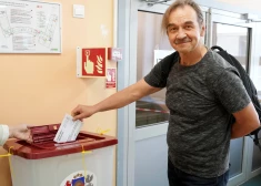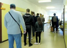 2025. gada 7. jūnijs. Cilvēki piedalās pašvaldību vēlēšanu 60. un 61. vēlēšanu iecirknī Rīgas 25. vidusskolā.