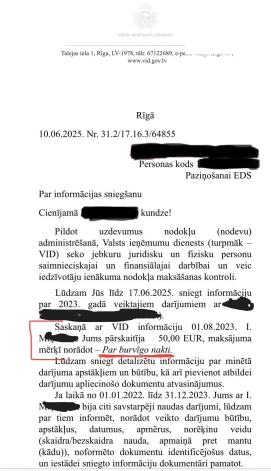 Mikroblogošanas vietnē X.com lielu sabiedrības uzmanību pievērsis kāda lietotāja ieraksts, kurā tiek apgalvots, ka Valsts ieņēmumu dienests (VID) pieprasījis kādai sievietei paskaidrojumus par pirms diviem gadiem saņemtu maksājumu - 50 eiro.