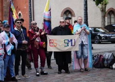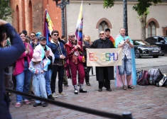 FOTO: Latvijas kvīru koris pie Saeimas protestē par LGBT+ personu tiesībām