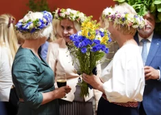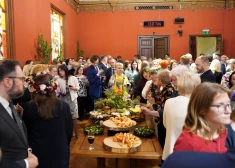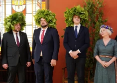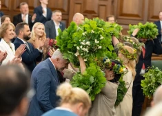 FOTO: dziesmas, vainagi un uzkodu galds - Saeimā jautrā noskaņā svin Jāņus