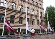 Pirmdien Saeimā uzņēma XIII Latvijas Skolu jaunatnes dziesmu un deju svētku novadu koordinatorus un viņiem pateicās par nesavtīgo darbu dziesmu un deju svētku norisē. Pasākuma ieskaņā pie Saeimas nama par godu XIII Latvijas Skolu jaunatnes dziesmu un deju svētkiem svinīgi tika pacelti Latvijas valsts karogi un karogi ar dziesmu un deju svētku simboliku.
