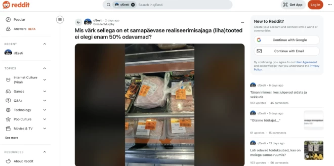 "Kāpēc gaļas produkti, kuru derīguma termiņš beidzas tajā pašā dienā, vairs nav par 50% lētāki?" vaicā kāds lietotājs platformā "Reddit".