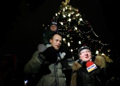 Rīgā iedegta lielā svētku egle, sāk darboties Ziemassvētku tirdziņi. FOTO