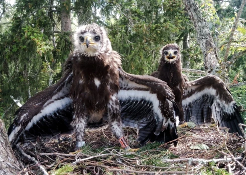 3. augusta pēcpusdienā AS “Latvijas valsts meži” (LVM) tiešsaistes kamerās varēja vērot īpašu notikumu — no ligzdas izlidoja jaunais klinšu ērglis Meldrs, vēsta LVM.
