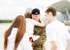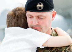 FOTO: ar prieku un asarām mājās sagaidīti Latvijas karavīri, kas atgriezušies no Kosovas