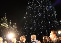 Briselē mirdz Rīgas Ziemassvētku egle. FOTO