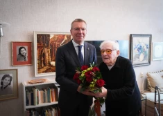 FOTO: Rinkēvičs sirsnīgi sveic vēsturnieku Marģeru Vestermani viņa 100 gadu jubilejā