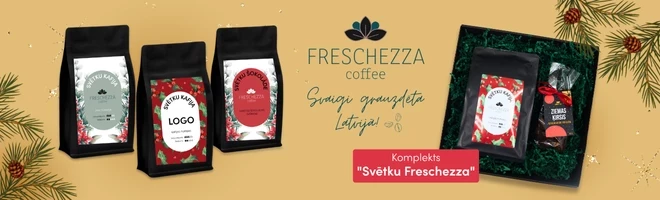 Kafijas mīļotājus var iepriecināt ar personalizētu Freschezza kafijas iepakojumu un vēlmēm atbilstošu saturu – maltu kafiju, kafijas pupiņām vai šokolādes dzērienu. Brazīlijā audzētās kafijas pupiņas grauzdē šeit pat Latvijā pēc Hestio pasūtījuma, tādēļ augstākā kvalitāte ir garantēta.