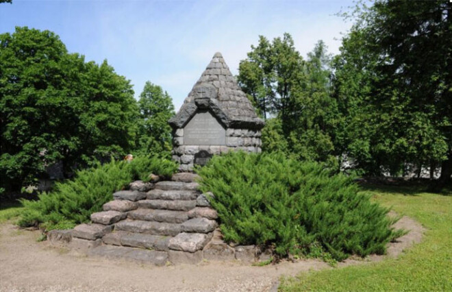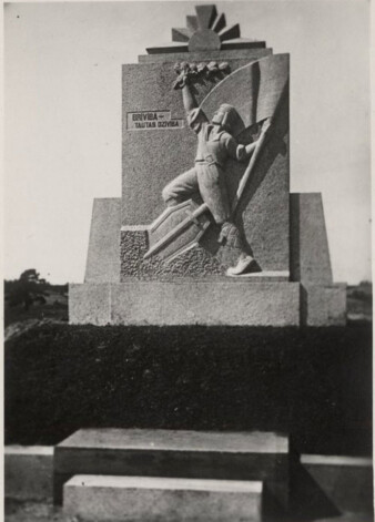 Atklāts 1940. gada 19. maijā. Piemineklis veidots pēc Kārļa Zemdegas meta. Postamenta priekšpusē iekalts teksts: „Svēts mantojums šī zeme mūsu tautai un svētīts tas, kas drošs par viņu krīt”.