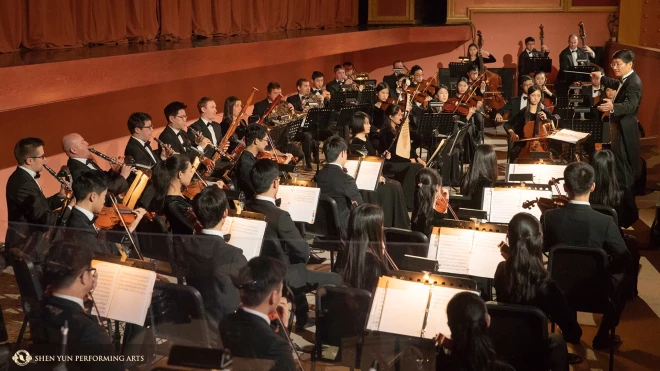 Vēl kāda unikāla iezīme – izrādē skan orķestris dzīvajā izpildījumā, apvienojot seno ķīniešu instrumentu liego skanējumu ar Rietumu orķestra varenību. Šī orķestra mūziķi ir Shen Yun kolektīva sastāvā un piedalās visās izrādēs pasaules koncertturnejas laikā.