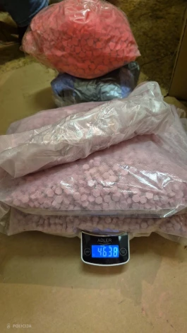 Veicot kratīšanu aizdomās turētā vīrieša īrētas mājas palīgtelpā, kas atrodas Rīgā, Pļavniekos, likumsargi atrada un atsavināja 12 kg MDMA tablešu (iespējams, ap 50 000 gabalu tablešu), 500 g amfetamīna un naudu – 153 585 eiro.
