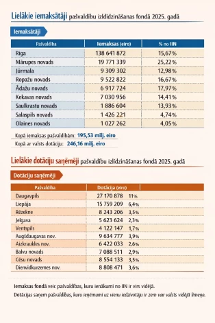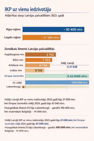 Latvijā vidējais IKP uz vienu iedzīvotāju ir 21,5 tūkstoši eiro. Tas nozīmē, ka Pierīgas iedzīvotājs dzīvo divreiz labāk nekā “vidējais latvietis”, bet latgalietis – divreiz sliktāk. Bet atšķirība starp bagātāko Mārupes un trūcīgāko Augšdaugavas novadu ir vēl kliedzošāka – teju astoņkārtīga. Lai nebūtu tik krasas atšķirības katru gadu bagātākās vietvaras (tā ir tā saucamā Rīgas metropole – galvaspilsēta un tai pieguļošās Pierīgas pašvaldības) pašvaldību finanšu izlīdzināšanas fondā (PFI) iemaksā miljoniem eiro, kurus vēlāk sadala trūcīgākajām pašvaldībām – teritorijām ārpus Rīgas metropoles visā valstī, bet lauvas tiesu iegūst Austumlatvijas novadi.