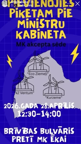 Pikets pret trīs vēja parku būvniecību pie Ministru kabineta (2026. gada 28. aprīlis)