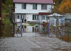 Kaimiņi ir galīgi satriekti, viņiem ir šausmīgi. Ūdens līmenis varētu būt cēlies par kādu pusotru metru. Viss pludo! Bēdīgi…