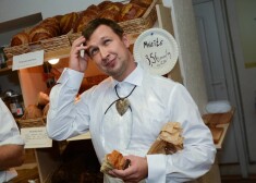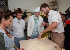 Aktieri Ķesteris, Daudziņa, Siliņš un Lisners cep maizi