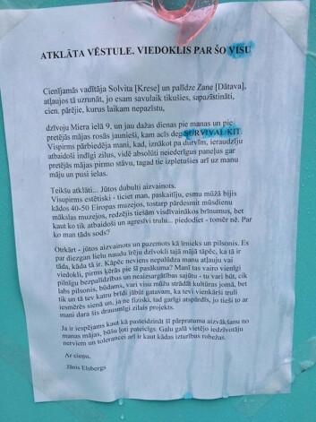 Ja ir iespējams kaut kā pasteidzināt šī pārpratuma aizvākšanu no manas mājas, būšu ļoti pateicīgs. Galu galā vietējo iedzīvotāju nerviem un tolerancei arī ir kaut kādas izturības robežas.”