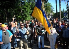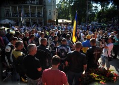 Aģentūra LETA novēroja, ka pie Dzintaru koncertzāles bija ieradušies ap 60 motobraucēju. Ar Ukrainas karogu bija ieradusies arī biedrības "Latvijas ukraiņu kongress" pārstāve Tatjana Lazda.