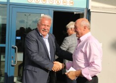 Pēc grandiozā lielkoncerta jubilārs Jānis Peters mūziķus un ģimeni cienāja ar svētku kūku.