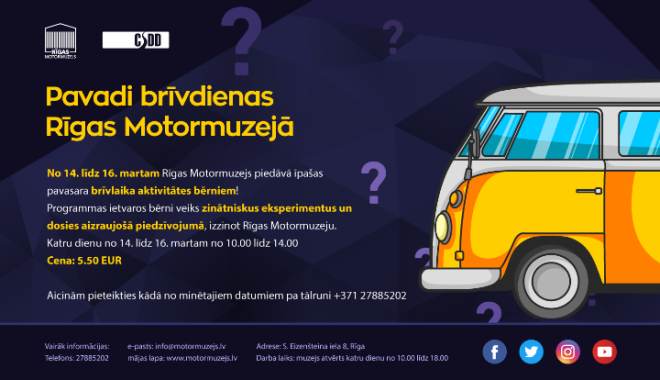 Skolēnu pavasara brīvlaikā Rīgas Motormuzejs aicina skolēnus nesēdēt mājās, tā vietā apmeklēt izglītojošu dienas nometni muzejā ar iepriekš vēl nebijušu programmu.