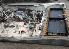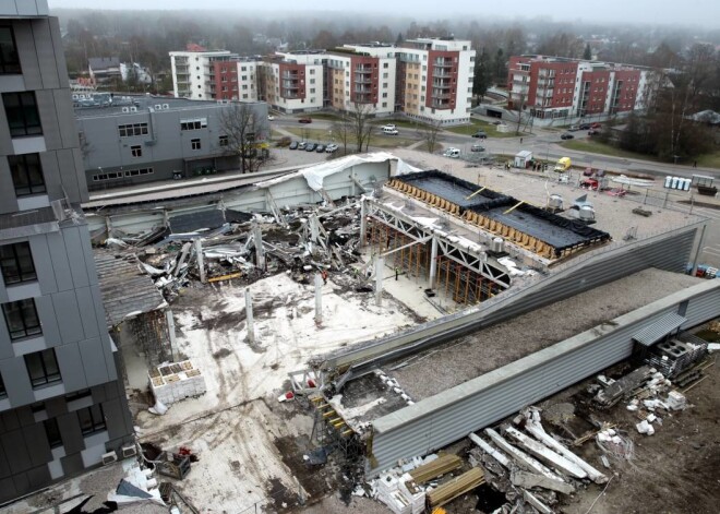 Uz sabrukušās Maximas jumta Zolitūdē izmeklēšanas vajadzībām uzbūvē baseinu