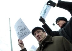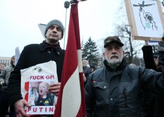 Pie Krievijas vēstniecības Latvijā protestē pret Krievijas agresiju Ukrainā