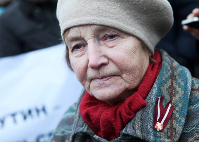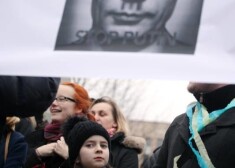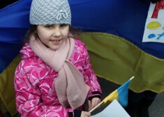 Protestējot pret Krievijas parlamenta 1.marta lēmumu atļaut Krievijai ievest savu karaspēku Ukrainas teritorijā, svētdien, 2. martā Rīgā, pie Krievijas vēstniecības, ...