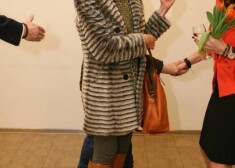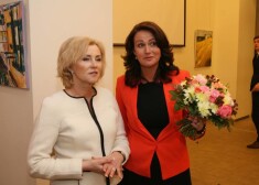 Prominences sveic Ievu Bondari personālizstādes atklāšanā. FOTO