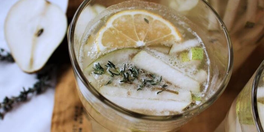 Pielej baltvīnu, sidru un visu samaisa. Pievieno timiāna zariņus un liek ledusskapī nostāvēties 2–6 stundas.