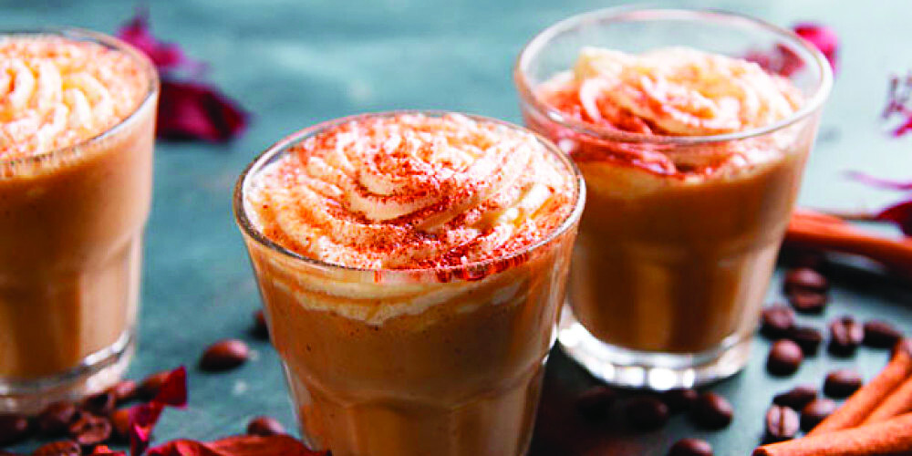 Lej glāzēs sablendēto kafiju, rotā ar putukrējumu un pārkaisi ar kanēli. Ja vēlies, vari pārliet ar karameļu vai šokolādes sīrupu.
