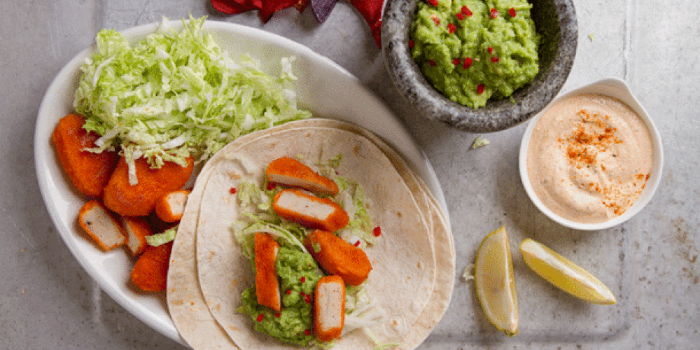 Tortillas ar cāļa gaļas nagetiem un avokado mērci