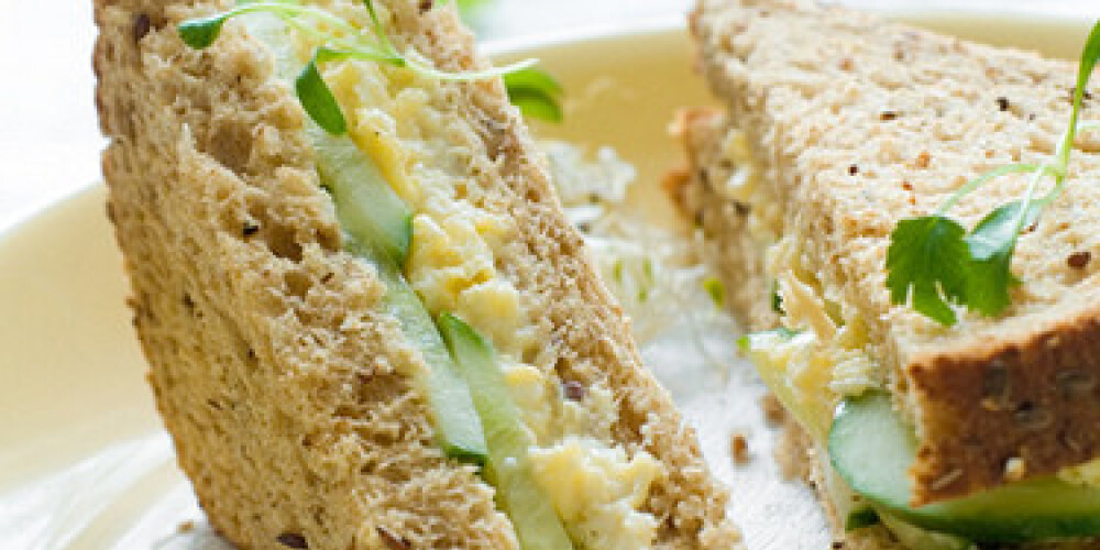 Olas sajauc kopā ar lokiem, pievieno majonēzi, sinepes, sāli, piparus un visu kopā sajauc. Uz 4 maizes šķēlēm uzliek olu salātus, pa virsu uzliek svaigā gurķa šķēlītes un apsedz ar pārejām 4 maizes šķēlēm.
