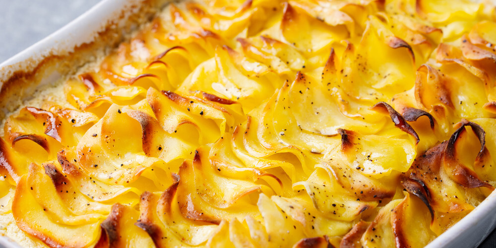 Nomizotus ķiplokus ļoti smalki sakapā. Samaisi ar krējumu, rīvēto sieru, sāli un pipariem, iemaisi dilles. Liec uz kartupeļiem un izlīdzini.