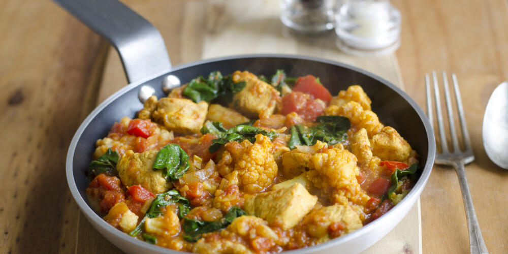 Sīpolu sagriez smalkās ripiņās, pannā to apcep to mīkstu un zeltainu. Tad pievieno karija pastu, kurkumu un pāris minūtes pasautē.