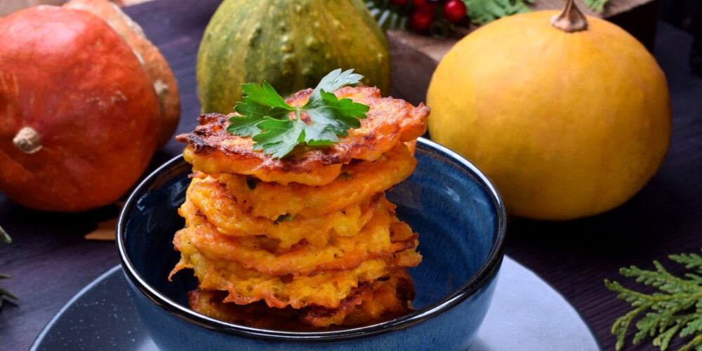 Pievieno visas pārējās sastāvdaļas un samaisi. Cep lielā eļļas daudzumā uz karstas pannas no abām pusēm zeltaini brūnas.