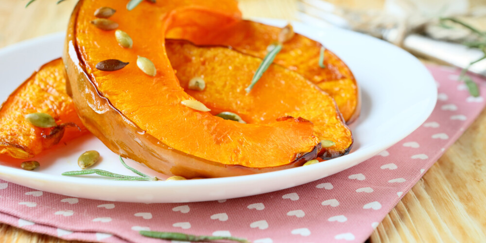 Krāsnī cepts ķirbis un bietes ar riekstiem