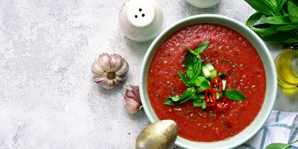 Gurķi arī sagriez gabalos un kopā ar grilētajiem dārzeņiem, tomātu sulu, eļļu, etiķi un ķiplokiem sablendē diezgan graudainā konsistencē (lai var sajust dārzeņu kripatiņas). Pievieno aso mērci un sāli pēc garšas.